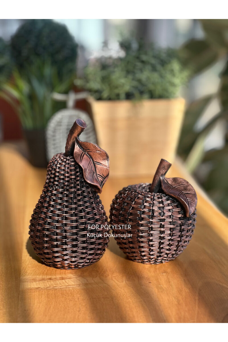 2’li Hasırlı Elma Armut Dekor/Masa-Sehpa Üstü Biblo/Ev-Ofis Dekorasyon/Kitaplık Süsü/Raf Kombin