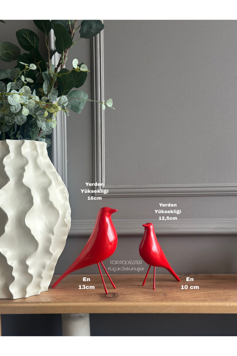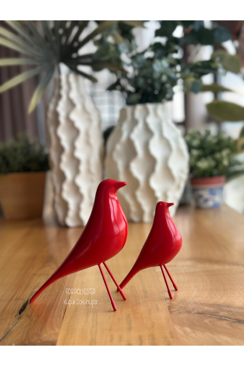 2’li Takım Dekoratif Kırmızı Kuş Biblo Masa-Sehpa Üstü Aksesuar/Kitaplık Süsü/Raf Kombin/Aksesuar