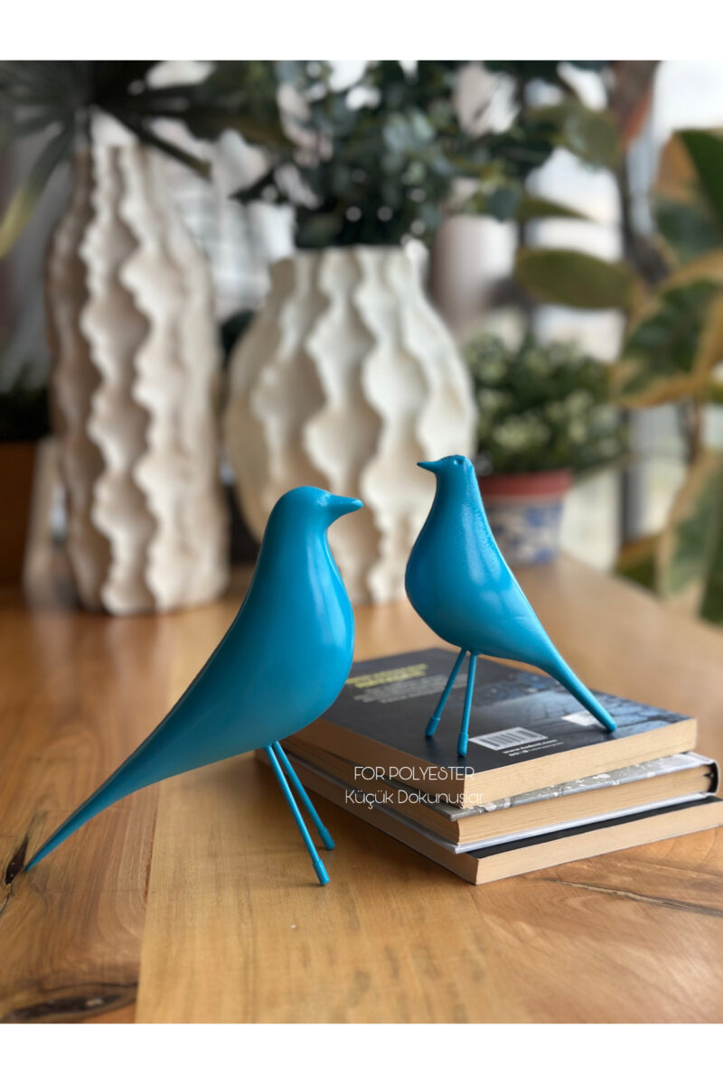 2’li Takım Mavi Dekoratif Kuş Biblo Masa-Sehpa Üstü Aksesuar/Kitaplık Süsü/Raf Kombin/Aksesuar