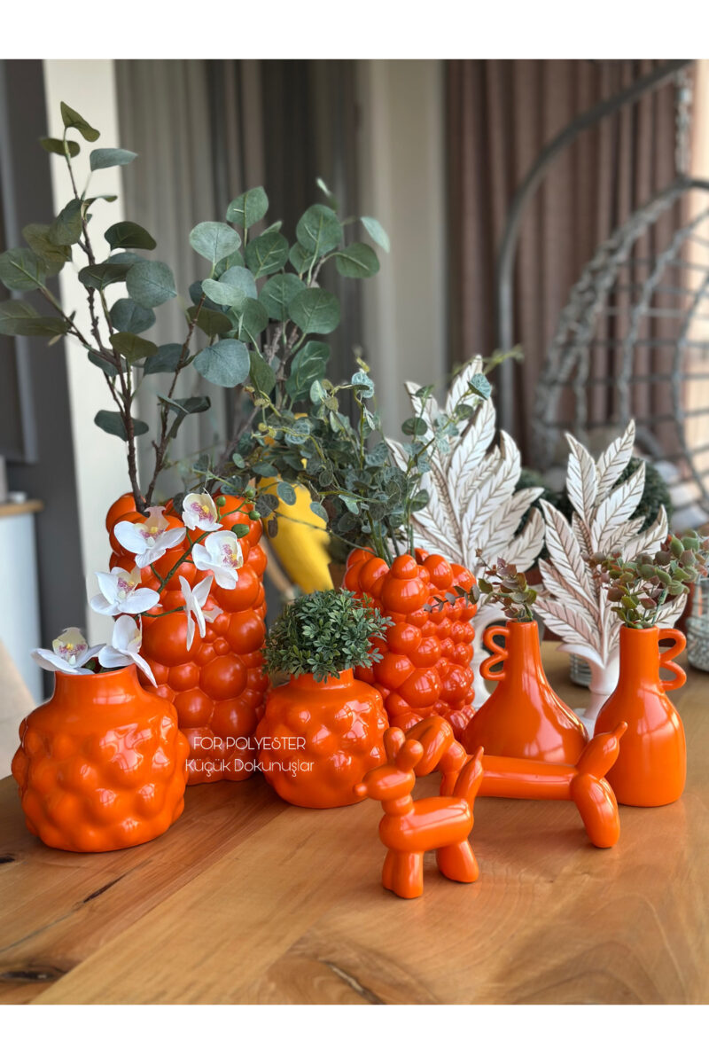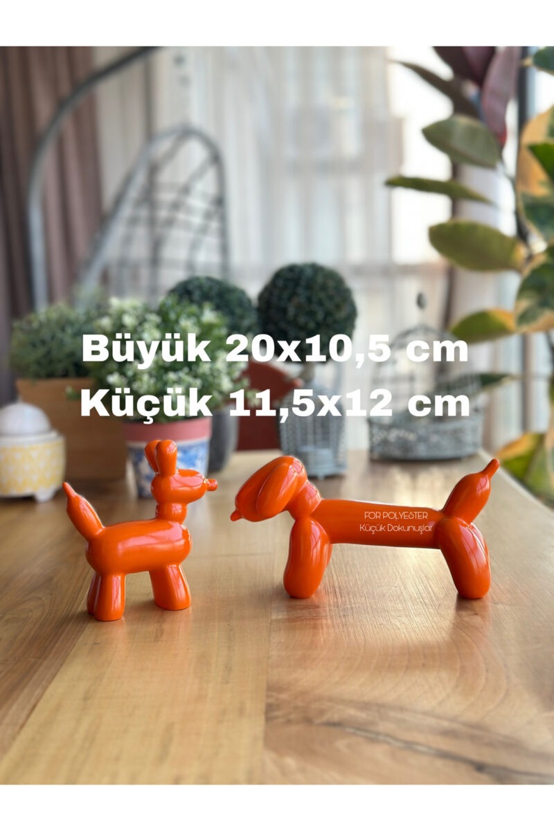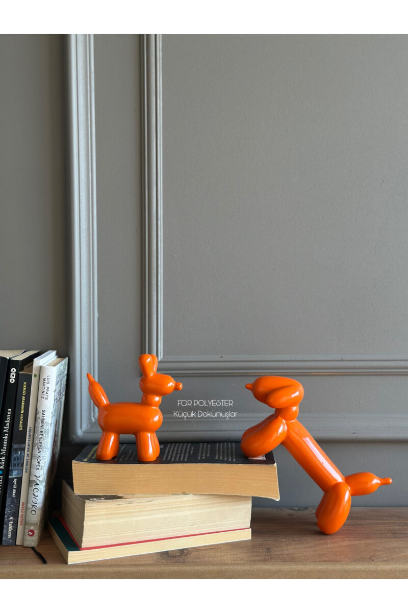 Dekoratif Dachshund Cinsi Balon Köpek Biblo Takım /Masa-Sehpa Üstü/ Kitaplık Süsü Turuncu