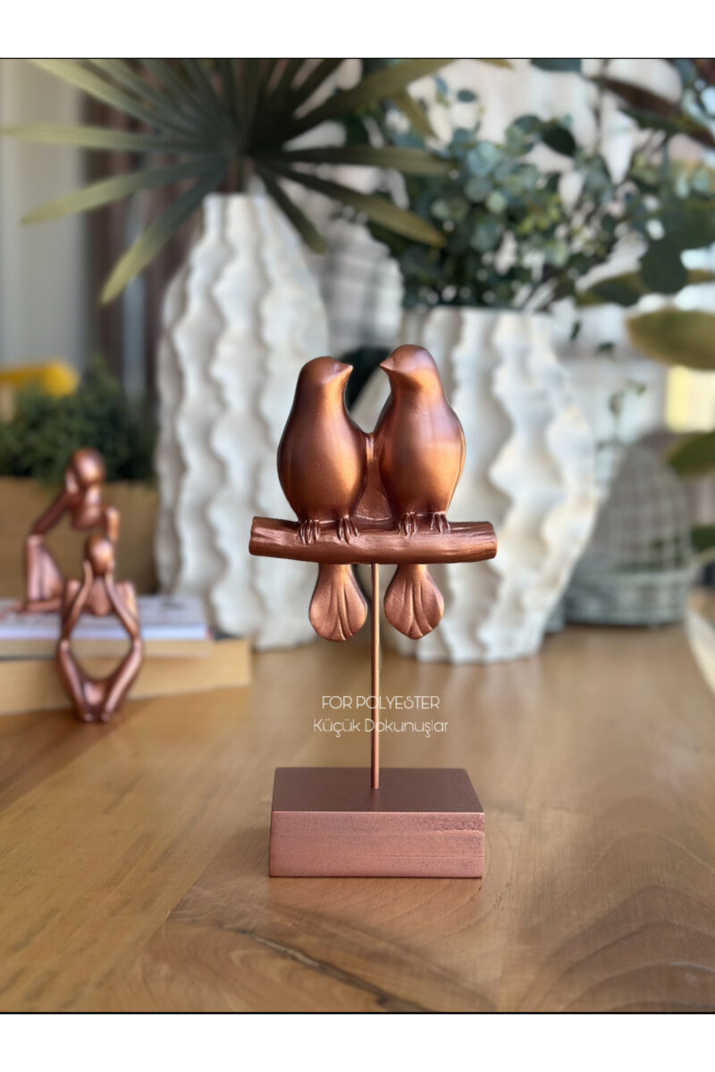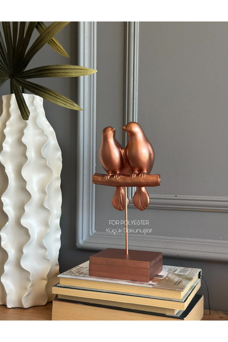 Dekoratif Kuşlu Biblo Bakır/Masa-Sehpa Üstü Aksesuar/Kitaplık Süsü/Raf Kombin