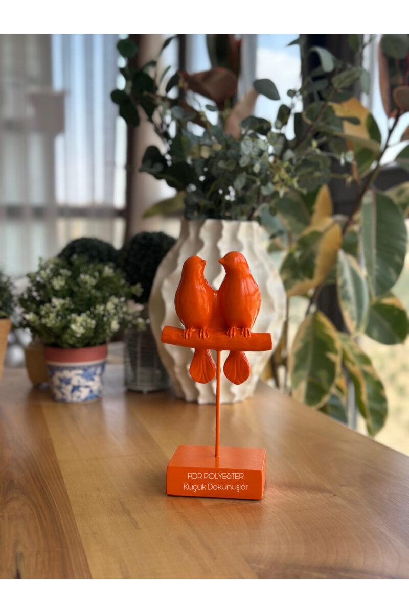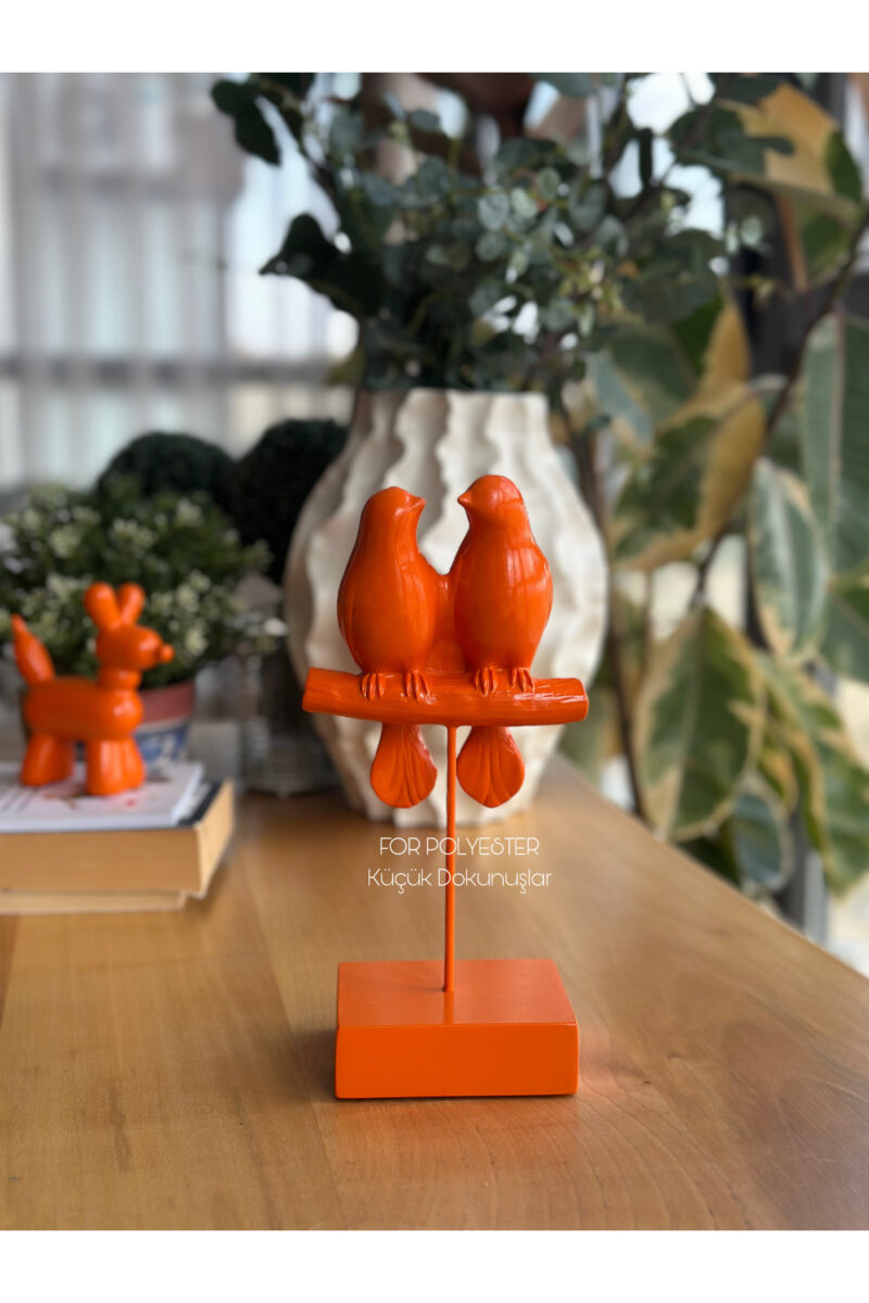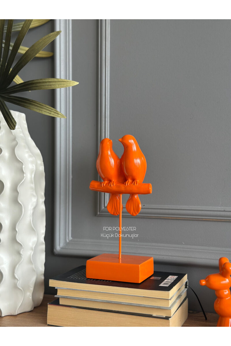 Dekoratif Kuşlu Biblo Turuncu /Masa-Sehpa Üstü Aksesuar/Kitaplık Süsü/Raf Kombin