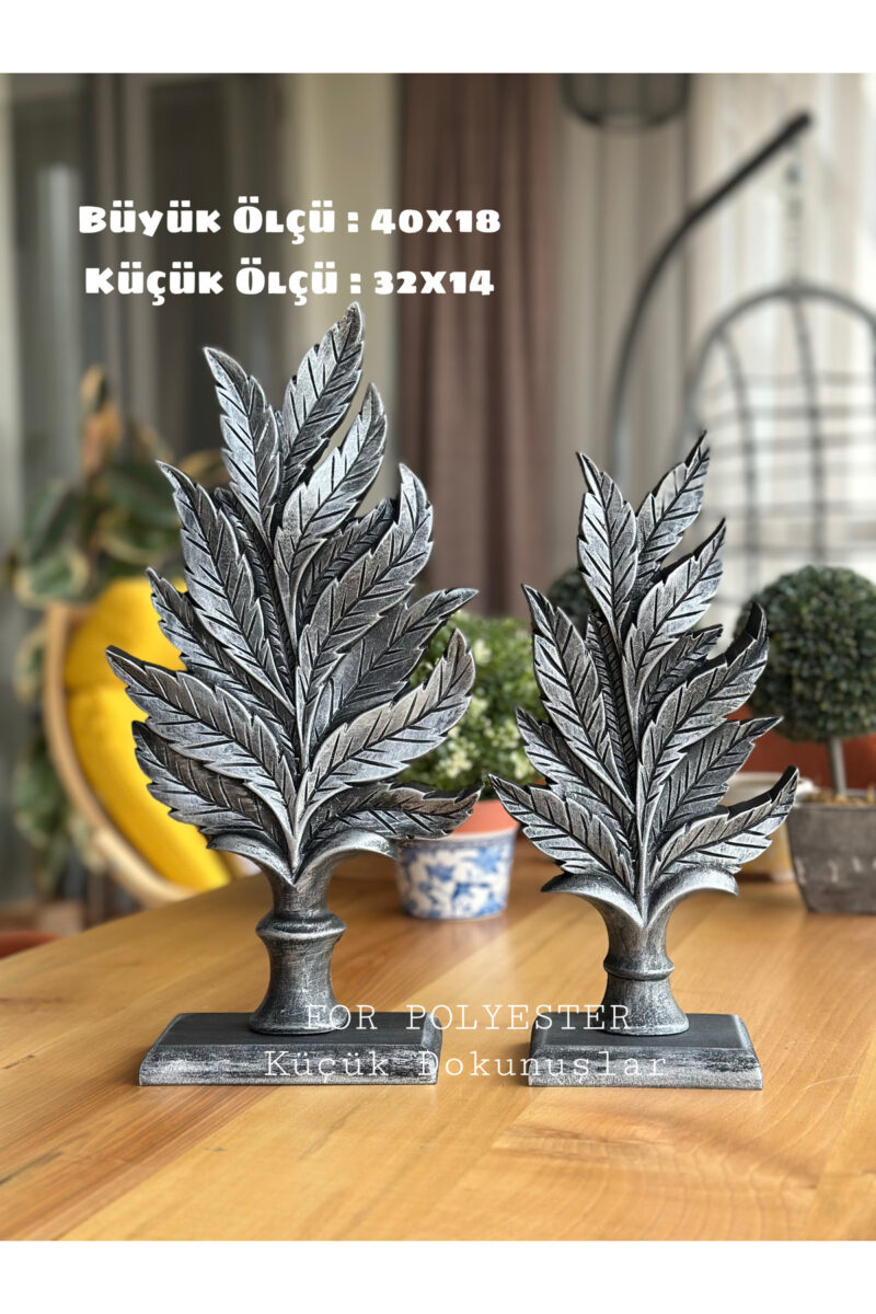 Modern tasarımıyla, Hem ev hem de ofis dekorasyonlarında kullanılabilir.; poliresin (polyester mermerit ) ve kaidesi ahşap malzemesi ile uzun Ömürlü kullanım sağlar.; Büyük Yaprak: 40×18 Küçük Yaprak : 32×14
