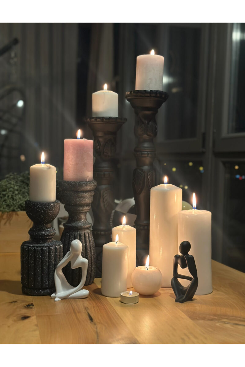 Modern tasarımıyla evinizin dekorasyonuna şıklık katan granit desenli 2’li mumluk takım; Poliresin materyali sayesinde dayanıklı ve uzun ömürlü kullanım sunar; İki adet mumluk içeren set, hem pratik hem de estetik bir görünüm sağlar;